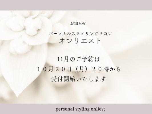 11月のご予約を本日、20時より受付開始いたします。