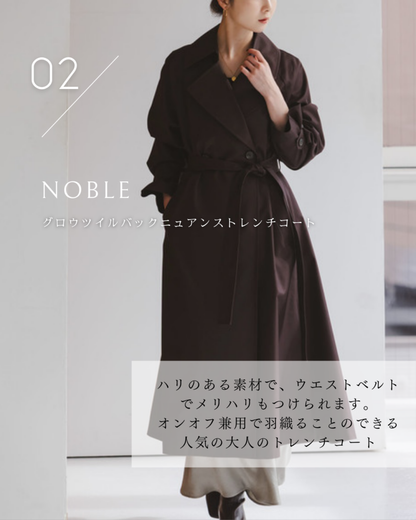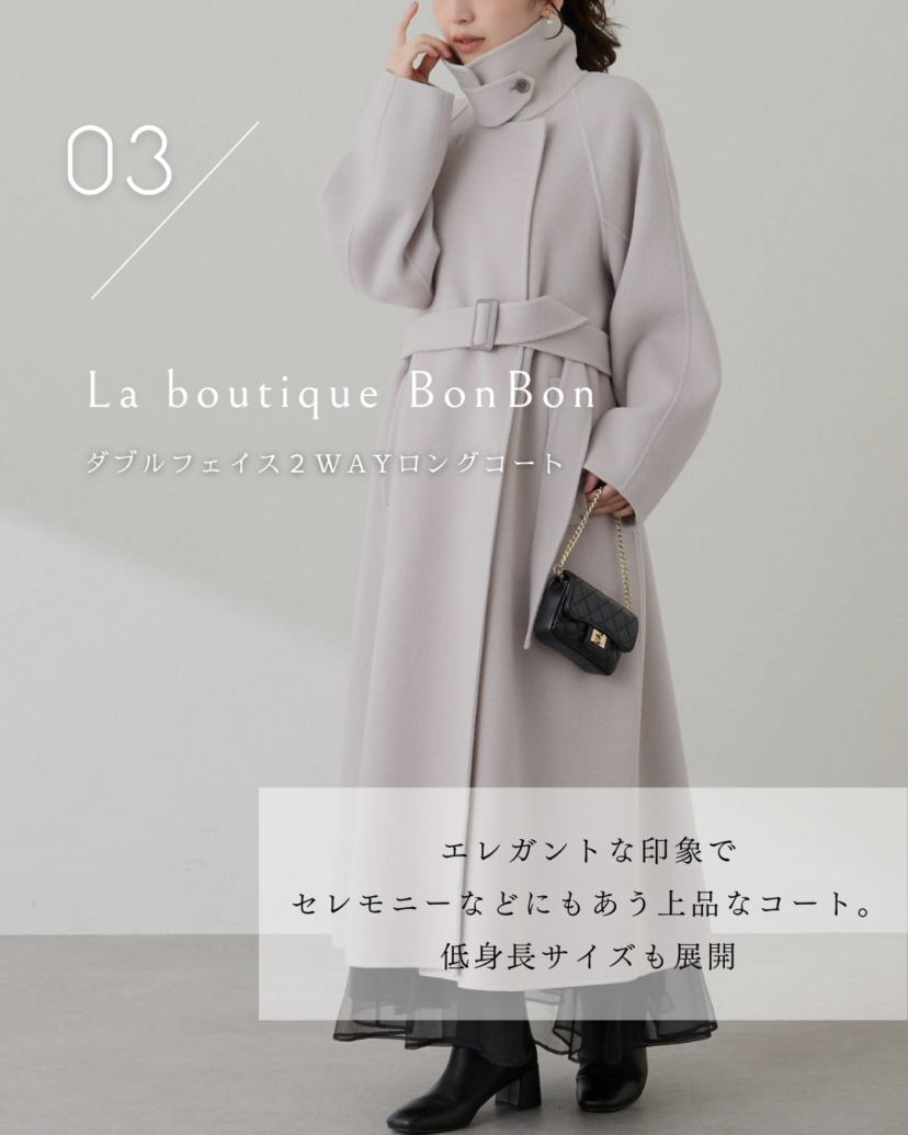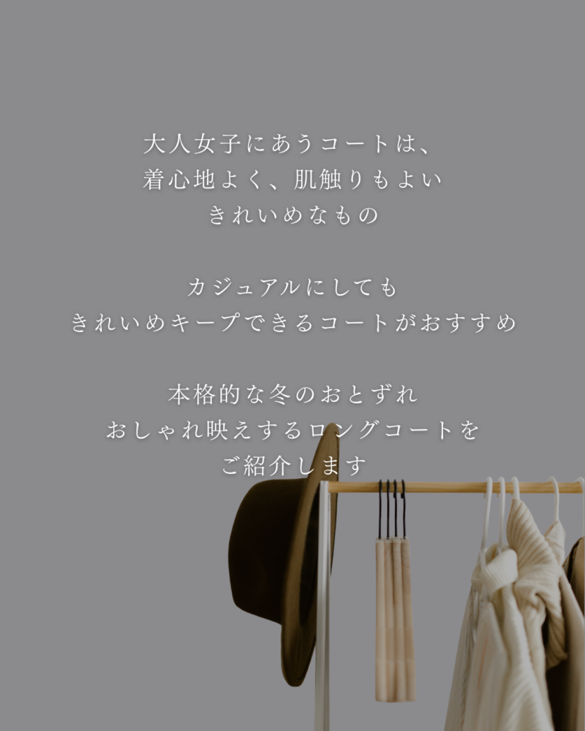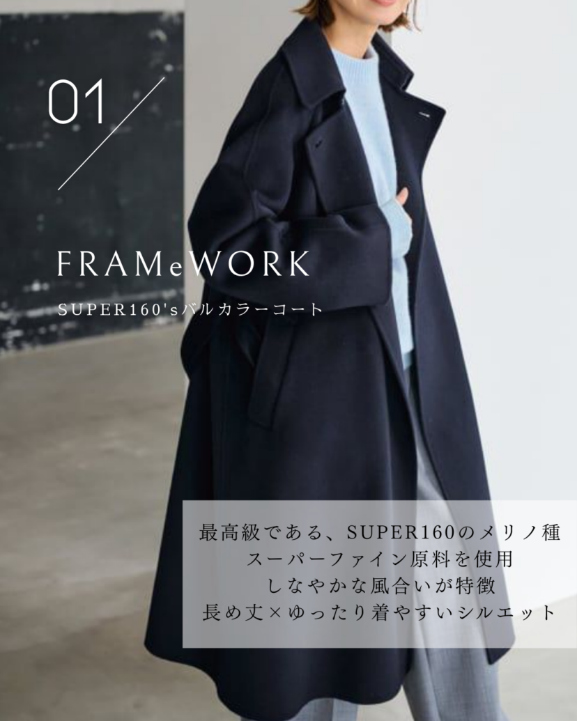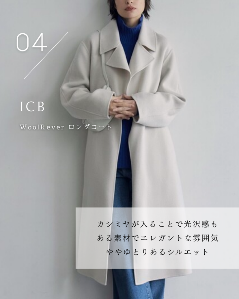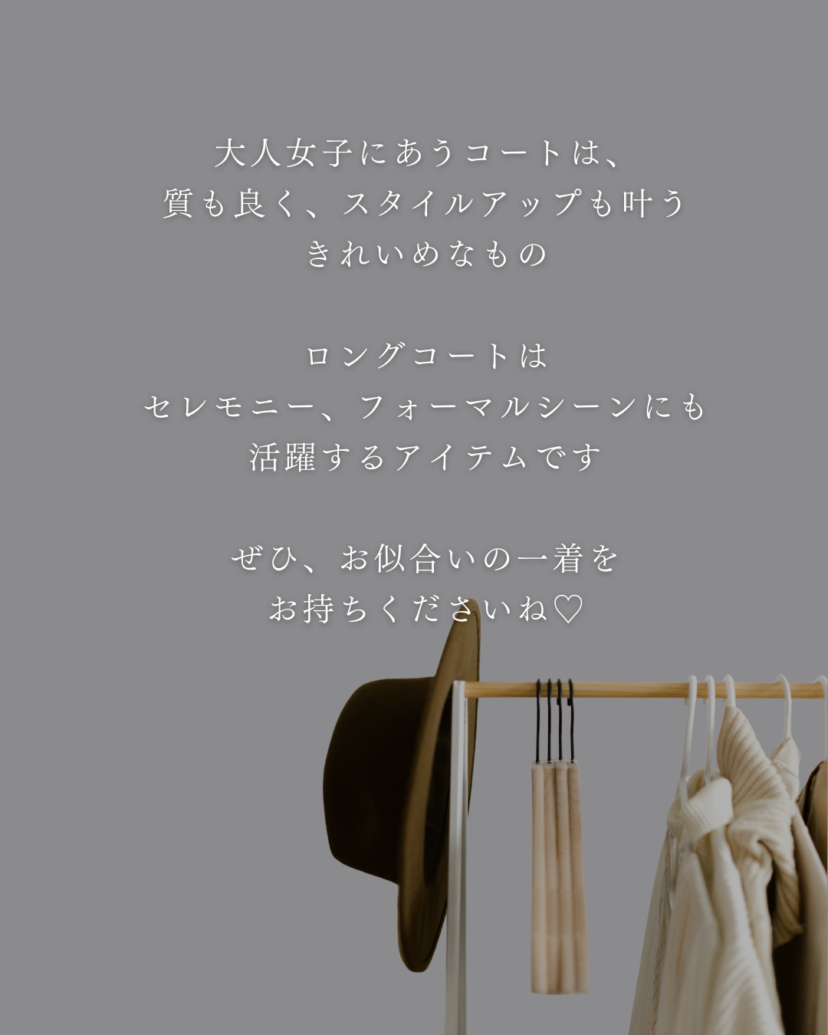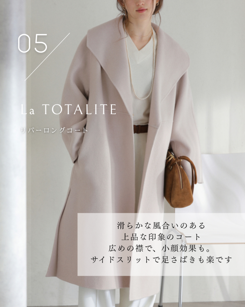 後ろのエリが高く、前が低く折り返す形が特徴のコート