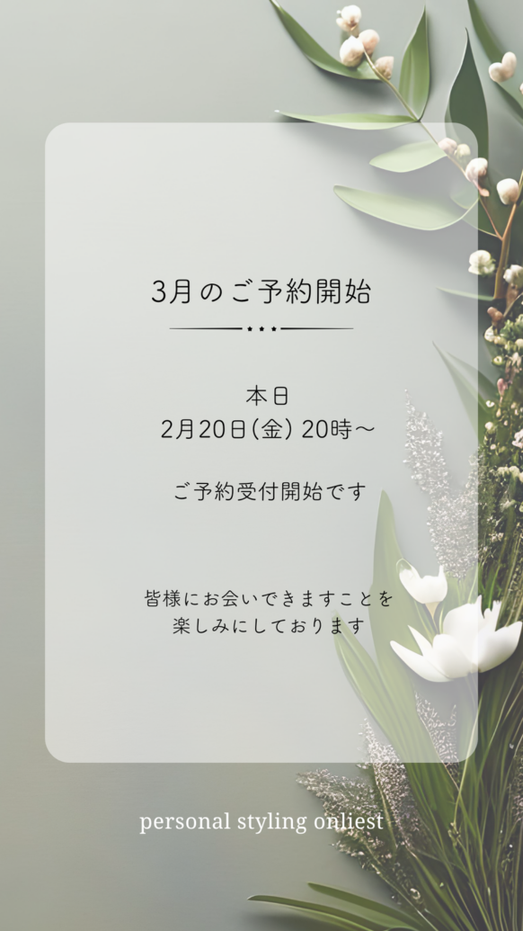 3月のご予約についてのお知らせです。
